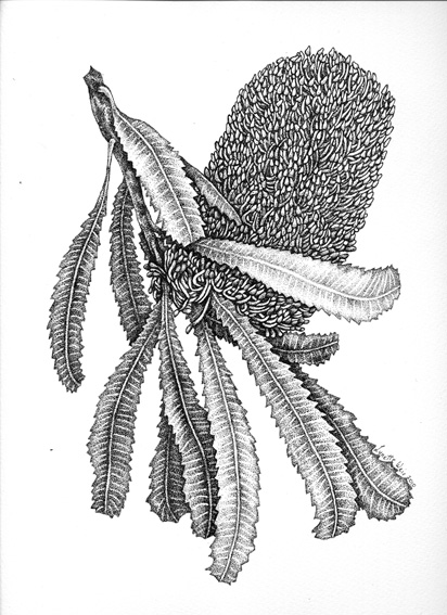 This illustration/drawing of a Banksia serrata is probably about half way through but I am pleased with the way it is coming along. I have a couple more drawings sitting back in various states but none ready to ink.