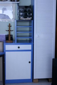 I have a small filing cabinet – so I have somewhere to keep any paperwork. The small cupboard on the left is a general purpose one for storage but the one on the right is a print drying cupboard.