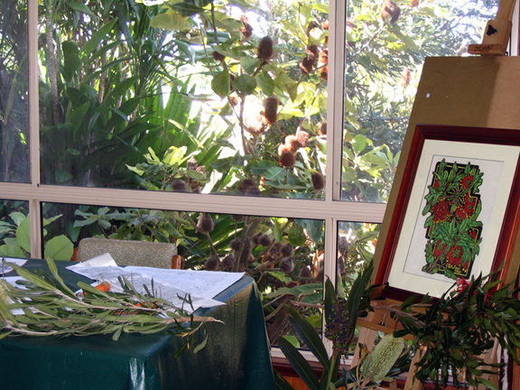 I didn’t always have the luxury of these two studio spaces to work, but as the family has been slowly been getting smaller I have been able to spread out a bit. Even the outside shed for printing is relatively recent – previously I took over a section of the garage with my print table and press. This was very difficult trying to keep clean – one of the aspects of getting spot free printing is to have clean surfaces and surroundings so dirt and dust is not getting onto linoblocks, tables and ink surfaces. But you make do with the best you can, aim to get some space – even if small where you can work. The best places are simply somewhere you can leave your work out if at all possible so that you don’t have to constantly get it out to work and put it away when you finish, that is the best thing about having these two spaces – the freedom to come and go whilst working.