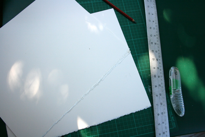 3. A clean piece of cardboard with a ruled outline for the current linoblock and one for the sized paper so that you can lay down the linoblock and paper in the same spot each time and