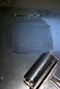 Then in a small area square of the size of the roller and roll the ink up to an even layer