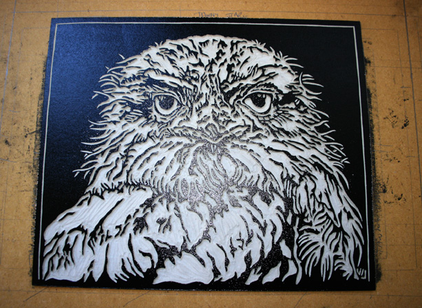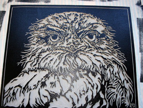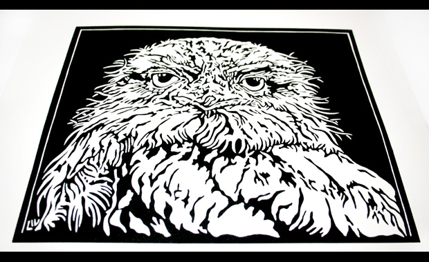 This is the latest linoblock that I have carved – it is of a Tawny Frogmouth.