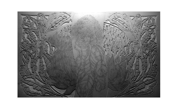 At this stage I am still deciding on the style of hatching I would like to carve on the leaves – so have left the sections that you can see on the leaves at the top of this image with crosses marking them as flat raised areas – need to make the decision soon…