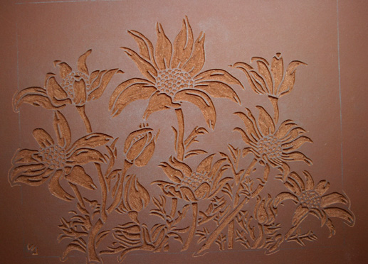 This is a brown lino – not sure of its name – it carves easily but it can crumble more around the edges which can be frustrating. I had always used the grey silkcut lino but they kept changing the ‘formula’ over past years and I was very unhappy with it.